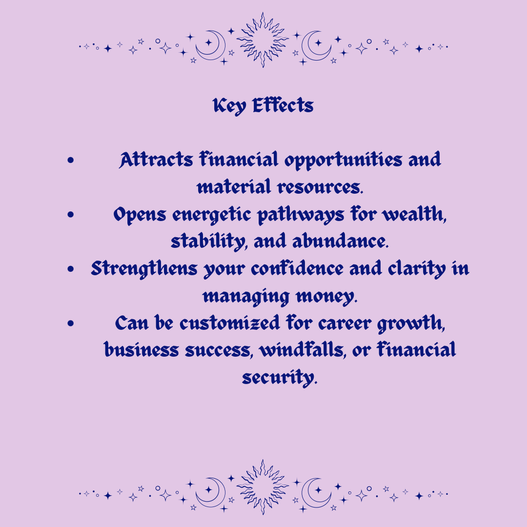 Whether you seek extra income, unexpected financial opportunities, or steady growth in your ventures, this spell empowers your connection to abundance, reminding the universe that your prosperity is both deserved and inevitable.
